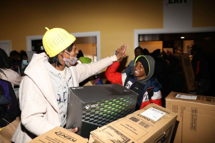 The gifts Meek Mill, Roc Nation, Michael Rubin and Robert Kraft gave away included macbooks, Amazon Fire HD tablets, bikes, helmets, gift cards, board games, dolls and winter coats.